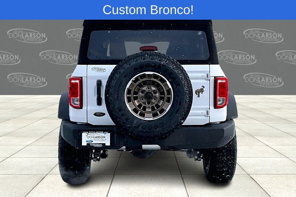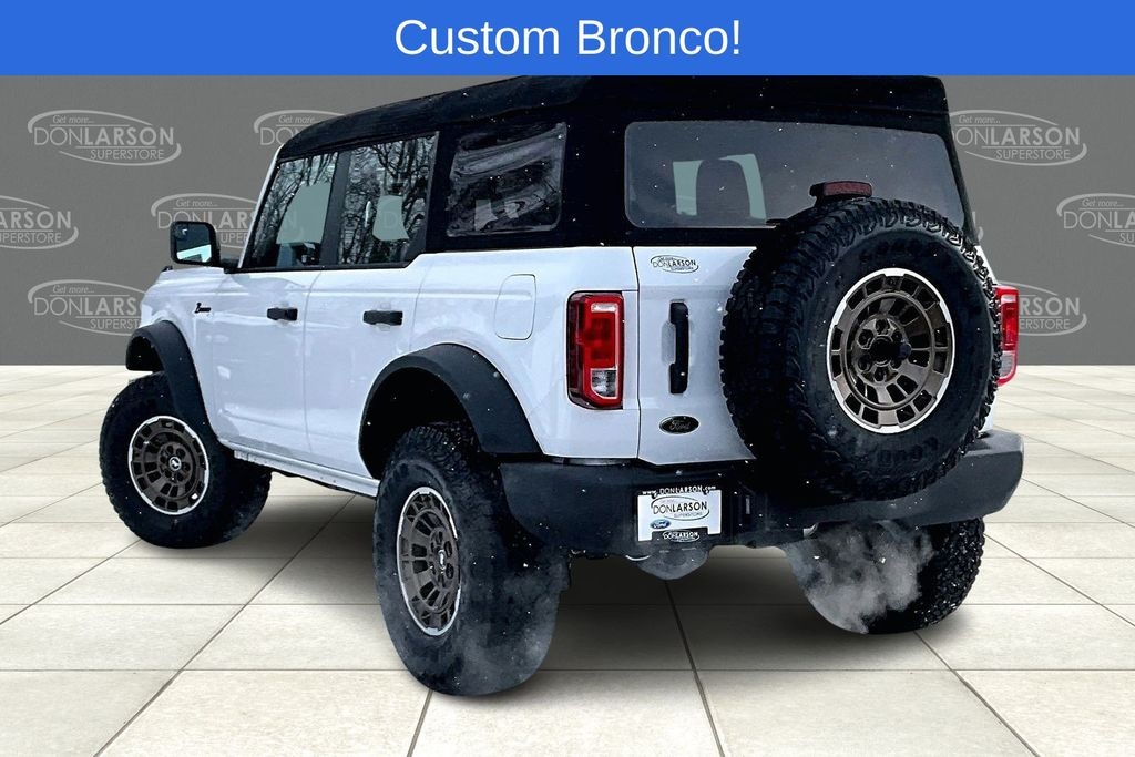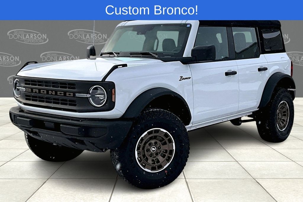 Recent Arrival! Ford Custom Garage Sinister Bronze Package! Custom Wheels, Tires, Ford Pro-Tuner, Lift Kit and much more. Oxford White 4-Wheel Disc Brakes, 4.46 Axle Ratio, 7 Speakers, ABS brakes, Air Conditioning, AM/FM radio: SiriusXM with 360L, AM/FM Stereo, Auto High-beam Headlights, Brake assist, Cloth Bucket Seats, Compass, Delay-off headlights, Driver door bin, Driver vanity mirror, Dual front impact airbags, Dual front side impact airbags, Electronic Stability Control, Emergency communication system: 911 Assist, Exterior Parking Camera Rear, Front anti-roll bar, Front Bucket Seats, Front Center Armrest, Front reading lights, Front wheel independent suspension, Fully automatic headlights, Heated door mirrors, Illuminated entry, Integrated roll-over protection, Low tire pressure warning, Occupant sensing airbag, Outside temperature display, Overhead airbag, Overhead console, Panic alarm, Passenger door bin, Passenger vanity mirror, Power door mirrors, Power steering, Power windows, Radio data system, Remote keyless entry, Security system, SiriusXM w/360L, Speed control, Split folding rear seat, Steering wheel mounted audio controls, SYNC 4, Tachometer, Telescoping steering wheel, Tilt steering wheel, Traction control, Trip computer, Variably intermittent wipers, Wheels: 16" Bright Polished Silver-Painted Steel. 2025 Ford Bronco 4WD 2.3L EcoBoost I-4