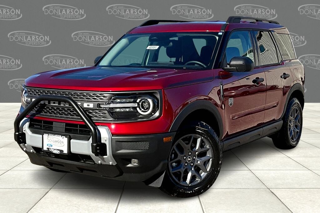 Recent Arrival! Ruby Red 4-Wheel Disc Brakes, 6 Speakers, ABS brakes, Air Conditioning, Alloy wheels, AM/FM radio: SiriusXM, AM/FM Stereo, Auto High-beam Headlights, Automatic temperature control, Brake assist, Cloth w/Easy-to-Clean Front Bucket Seats, Compass, Delay-off headlights, Driver door bin, Driver vanity mirror, Dual front impact airbags, Dual front side impact airbags, Electronic Stability Control, Emergency communication system: SYNC 4 911 Assist, Four wheel independent suspension, Front anti-roll bar, Front Bucket Seats, Front Center Armrest, Front reading lights, Fully automatic headlights, Heated door mirrors, Illuminated entry, Knee airbag, Low tire pressure warning, Occupant sensing airbag, Outside temperature display, Overhead airbag, Overhead console, Panic alarm, Passenger door bin, Passenger vanity mirror, Power door mirrors, Power steering, Power windows, Radio data system, Rear anti-roll bar, Rear Parking Sensors, Rear reading lights, Rear seat center armrest, Rear window defroster, Rear window wiper, Remote keyless entry, Security system, SiriusXM, Speed control, Speed-sensing steering, Speed-Sensitive Wipers, Split folding rear seat, Steering wheel mounted audio controls, SYNC 4 w/Enhanced Voice Recognition, Tachometer, Telescoping steering wheel, Tilt steering wheel, Traction control, Trip computer, Variably intermittent wipers, Wheels: 17" Carbonized Gray-Painted Aluminum. 25/30 City/Highway MPG 2025 Ford Bronco Sport Big Bend 4WD 8-Speed Automatic 1.5L EcoBoost