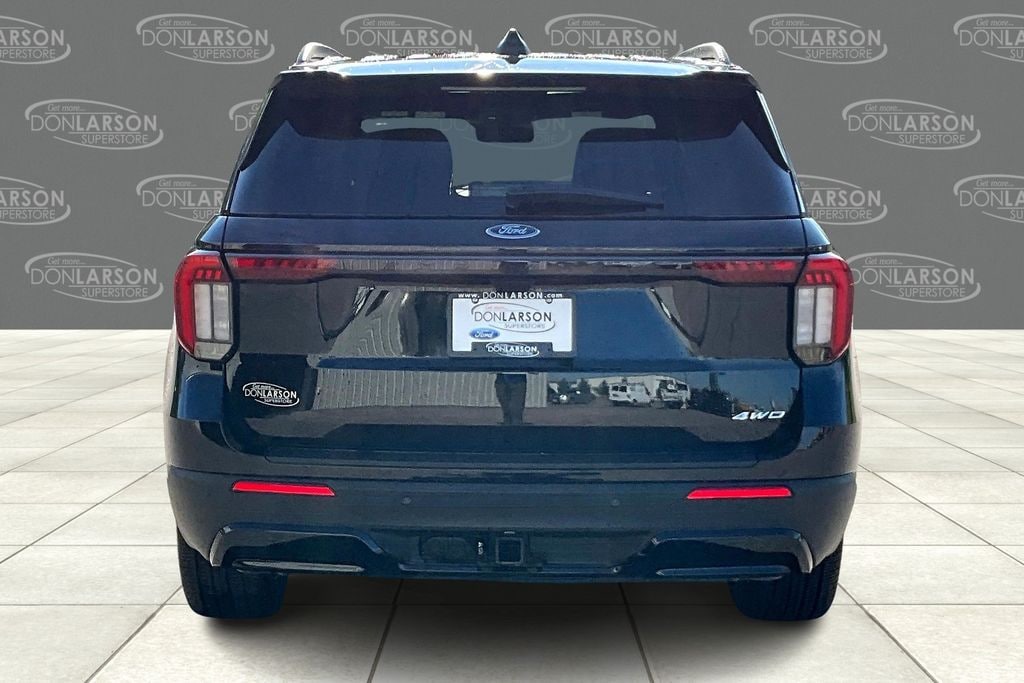 Recent Arrival! Agate Black Metallic 4WD, 10 Speakers, 3.58 Non-Limited Slip Rear Axle, 3rd row seats: bench, 4-Wheel Disc Brakes, ABS brakes, Air Conditioning, Alloy wheels, AM/FM radio: SiriusXM with 360L, Apple CarPlay/Android Auto, Auto High-beam Headlights, Automatic temperature control, Brake assist, Bumpers: body-color, Compass, Delay-off headlights, Driver door bin, Driver vanity mirror, Dual front impact airbags, Dual front side impact airbags, Electronic Stability Control, Emergency communication system: 911 Assist, Exterior Parking Camera Rear, Four wheel independent suspension, Front anti-roll bar, Front Bucket Seats, Front Center Armrest, Front dual zone A/C, Front fog lights, Front reading lights, Fully automatic headlights, Garage door transmitter, Heated door mirrors, Heated front seats, Heated steering wheel, Heated Unique Cloth Captain's Chairs, Illuminated entry, Knee airbag, Leather steering wheel, Low tire pressure warning, Navigation System, Occupant sensing airbag, Outside temperature display, Overhead airbag, Overhead console, Panic alarm, Passenger door bin, Passenger vanity mirror, Power door mirrors, Power driver seat, Power Liftgate, Power passenger seat, Power steering, Power windows, Radio: B&O Sound System by Bang & Olufsen, Rear air conditioning, Rear anti-roll bar, Rear reading lights, Rear window defroster, Rear window wiper, Remote keyless entry, Security system, Speed control, Speed-sensing steering, Speed-Sensitive Wipers, Split folding rear seat, Spoiler, Steering wheel mounted audio controls, Tachometer, Telescoping steering wheel, Tilt steering wheel, Traction control, Trip computer, Variably intermittent wipers, Wheels: 20" Ebony-Painted Machined Aluminum, 4WD. 20/27 City/Highway MPG 2025 Ford Explorer ST-Line 4WD 10-Speed Automatic 2.3L EcoBoost I-4
