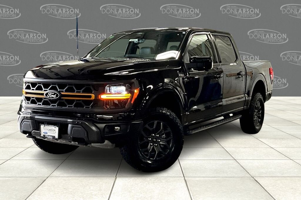 Recent Arrival! 4WD, 4-Wheel Disc Brakes, 8 Speakers, ABS brakes, Adjustable pedals, Air Conditioning, Alloy wheels, AM/FM radio: SiriusXM with 360L, Auto High-beam Headlights, Auto-dimming door mirrors, Auto-dimming Rear-View mirror, Automatic temperature control, Brake assist, Bumpers: body-color, Compass, Delay-off headlights, Driver door bin, Driver vanity mirror, Dual front impact airbags, Dual front side impact airbags, Electronic Locking w/3.73 Axle Ratio, Electronic Stability Control, Emergency communication system: SYNC 4 911 Assist, Front anti-roll bar, Front Bucket Seats, Front Center Armrest, Front dual zone A/C, Front fog lights, Front reading lights, Front wheel independent suspension, Fully automatic headlights, GVWR: 7,100 lbs Payload Package, Heated door mirrors, Heated front seats, Illuminated entry, Low tire pressure warning, Navigation system: Connected Navigation, Occupant sensing airbag, Outside temperature display, Overhead airbag, Overhead console, Panic alarm, Passenger door bin, Passenger vanity mirror, Power door mirrors, Power driver seat, Power passenger seat, Power steering, Power windows, Radio data system, Radio: B&O Sound System by Bang & Olufsen, Rear reading lights, Rear step bumper, Rear window defroster, Remote keyless entry, Security system, Speed control, Split folding rear seat, Steering wheel mounted audio controls, SYNC 4 w/Enhanced Voice Recognition, Tachometer, Telescoping steering wheel, Tilt steering wheel, Traction control, Trip computer, Turn signal indicator mirrors, Unique Sport Cloth 40/Console/40 Power Front Seat, Variably intermittent wipers, Voltmeter, Wheels: 18" Alloy w/Dark Matte Finish, 4WD. 2025 Ford F-150 Tremor 4WD 10-Speed Automatic 5.0L V8