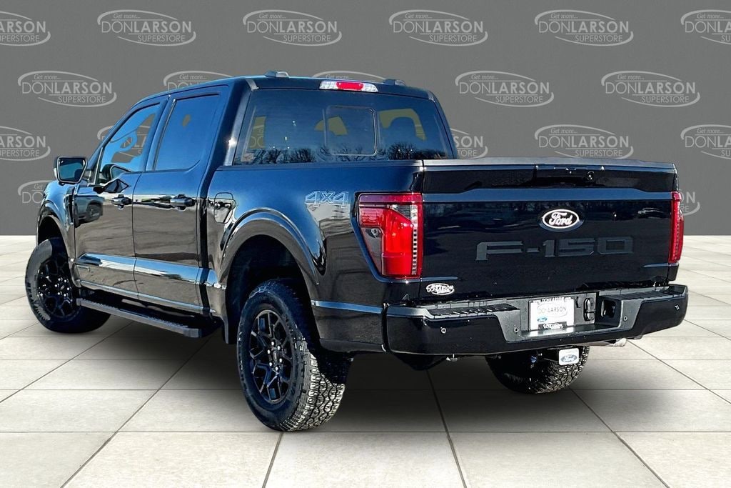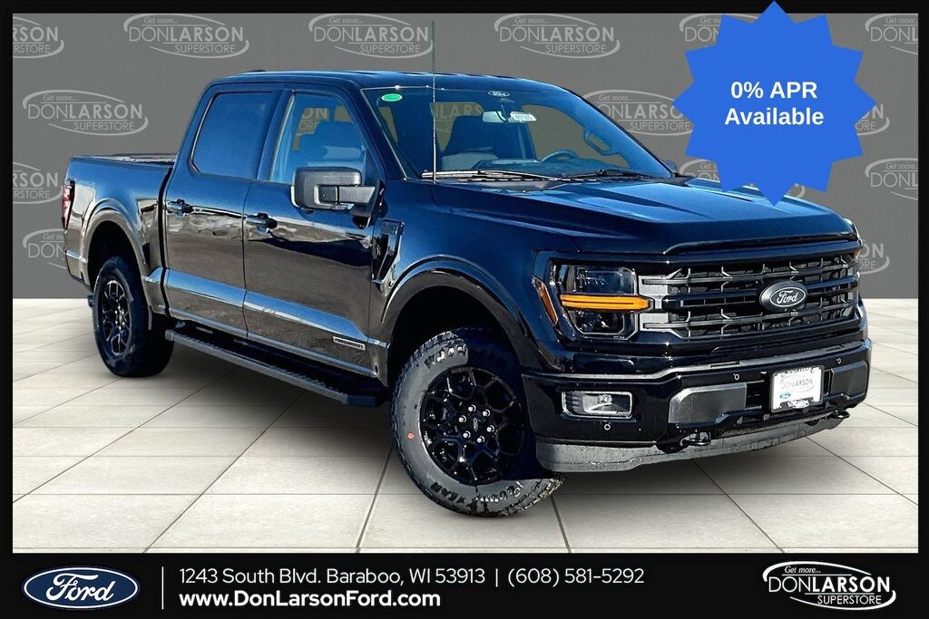 Agate Black Metallic 3.5L PowerBoost Full-Hybrid V6, 4WD, 360 Degree Camera, 4 Pickup Box Tie-Down Plates, 4-Wheel Disc Brakes, 400W Cab & Bed Outlets, 6 Speakers, 6" Angular Bright Anodized Step Bar, ABS brakes, Adaptive Cruise Control w/Stop & Go, Air Conditioning, Alloy wheels, AM/FM radio: SiriusXM with 360L, Auto High-beam Headlights, Auto-Dimming Rear-View Mirror, Bed Utility Package, Black Painted Grille w/Chrome Center Bar, Brake assist, Bumpers: chrome, Chrome Door & Tailgate Handles, Chrome Single-Tip Exhaust, Chrome wheels, Cloth 40/20/40 Front Seat, Cloth 40/Console/40 Front Seats, Compass, Connected Navigation, Console Worksurface, Delay-off headlights, Driver door bin, Driver State Detection, Driver vanity mirror, Dual front impact airbags, Dual front side impact airbags, Dual-Zone Electronic Automatic Temperature Control, Electronic Stability Control, Emergency communication system: SYNC 4 911 Assist, Equipment Group 302A Mid, Evasive Steering Assist, Ford Co-Pilot360 Assist 2.0, Front anti-roll bar, Front Center Armrest, Front fog lights, Front License Plate Bracket, Front Parking Sensors, Front reading lights, Front wheel independent suspension, Fully automatic headlights, Heated door mirrors, Heated Front Seats, Illuminated entry, Intelligent Access w/Push Button Start, Internet access capable: FordPass Connect 5G, LED Box Lighting, Low tire pressure warning, Mobile Office Package, Occupant sensing airbag, Outside temperature display, Overhead airbag, Overhead console, Panic alarm, Partitioned Lockable Rear Storage, Passenger door bin, Passenger vanity mirror, Power door mirrors, Power Glass Heated Sideview Mirrors, Power steering, Power windows, Power-Sliding Rear Window, Radio data system, Radio: AM/FM Stereo w/SiriusXM 360L, Rear Parking Sensors, Rear reading lights, Rear step bumper, Rear window defroster, Remote keyless entry, Remote Start System w/Remote Tailgate Release, Security system, Speed control, Split folding rear seat, Steering wheel mounted audio controls, SYNC 4 w/Enhanced Voice Recognition, Tachometer, Tailgate Step w/Tailgate Work Surface, Telescoping steering wheel, Tilt steering wheel, Tow/Haul Package, Towing Technology, Traction control, Tray Style Floor Liner w/Carpet Mats, Trip computer, Variably intermittent wipers, Voltmeter, Wheels: 18" Chrome-Like PVD, Wrapped Steering Wheel, 3.5L PowerBoost Full-Hybrid V6, 4WD. 2025 Ford F-150 XLT 4WD 10-Speed Automatic 3.5L PowerBoost Full-Hybrid V6