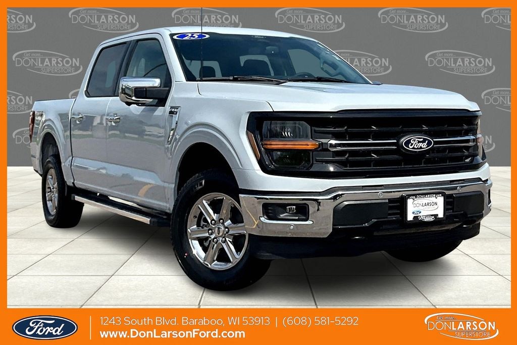 DEMO Space White Metallic 4WD, 3.31 Axle Ratio, 360 Degree Camera, 4-Wheel Disc Brakes, 400W Cab & Bed Outlets, 6 Speakers, 6" Angular Bright Anodized Step Bar, ABS brakes, Adaptive Cruise Control w/Stop & Go, Air Conditioning, Alloy wheels, AM/FM radio: SiriusXM with 360L, Auto High-beam Headlights, Auto-Dimming Rear-View Mirror, Black Painted Grille w/Chrome Center Bar, Brake assist, Bumpers: chrome, Chrome Door & Tailgate Handles, Chrome Single-Tip Exhaust, Chrome wheels, Cloth 40/20/40 Front Seat, Cloth 40/Console/40 Front Seats, Compass, Connected Navigation, Delay-off headlights, Driver door bin, Driver State Detection, Driver vanity mirror, Dual front impact airbags, Dual front side impact airbags, Dual-Zone Electronic Automatic Temperature Control, Electronic Stability Control, Emergency communication system: SYNC 4 911 Assist, Equipment Group 302A Mid, Evasive Steering Assist, Ford Co-Pilot360 Assist 2.0, Front anti-roll bar, Front Center Armrest, Front fog lights, Front License Plate Bracket, Front Parking Sensors, Front reading lights, Front wheel independent suspension, Fully automatic headlights, Heated door mirrors, Heated Front Seats, Illuminated entry, Intelligent Access w/Push Button Start, Low tire pressure warning, Occupant sensing airbag, Outside temperature display, Overhead airbag, Overhead console, Panic alarm, Passenger door bin, Passenger vanity mirror, Power door mirrors, Power Glass Heated Sideview Mirrors, Power steering, Power windows, Power-Sliding Rear Window, Radio data system, Radio: AM/FM Stereo w/SiriusXM 360L, Rear Parking Sensors, Rear reading lights, Rear step bumper, Rear window defroster, Remote keyless entry, Remote Start System w/Remote Tailgate Release, Security system, Speed control, Split folding rear seat, Steering wheel mounted audio controls, SYNC 4 w/Enhanced Voice Recognition, Tachometer, Telescoping steering wheel, Tilt steering wheel, Towing Technology, Traction control, Trip computer, Variably intermittent wipers, Voltmeter, Wheels: 18" Chrome-Like PVD, Wrapped Steering Wheel, 4WD. 2025 Ford F-150 XLT 4WD 10-Speed Automatic 5.0L V8