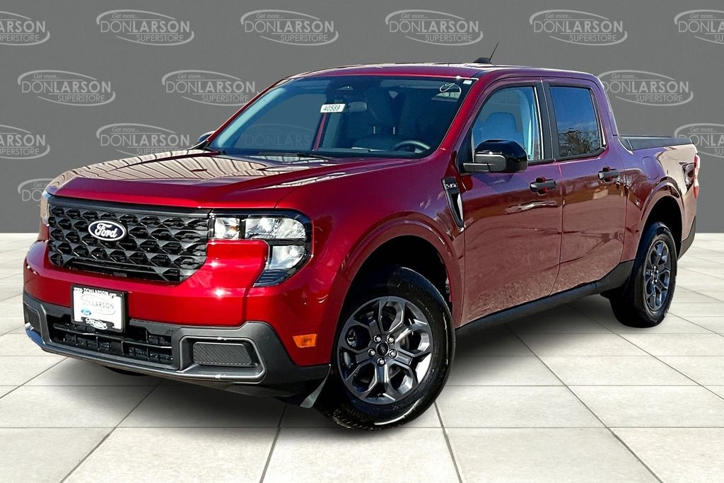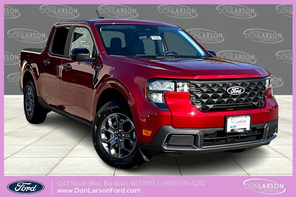 Recent Arrival! Ruby Red 2.5L I-4 Hybrid, 2.91 Axle Ratio, 4-Wheel Disc Brakes, 6 Speakers, ABS brakes, Air Conditioning, Alloy wheels, AM/FM radio: SiriusXM with 360L, Apple CarPlay/Android Auto, Auto High Beams, Auto High-beam Headlights, Automatic temperature control, Brake assist, Bumpers: body-color, Compass, Delay-off headlights, Driver door bin, Driver vanity mirror, Dual front impact airbags, Dual front side impact airbags, Electronic Stability Control, Emergency communication system: SYNC 4 911 Assist, Exterior Parking Camera Rear, Four wheel independent suspension, Front anti-roll bar, Front Bucket Seats, Front Center Armrest, Front reading lights, Fully automatic headlights, Illuminated entry, Knee airbag, Low tire pressure warning, Occupant sensing airbag, Outside temperature display, Overhead airbag, Overhead console, Panic alarm, Passenger door bin, Passenger vanity mirror, Power door mirrors, Power steering, Power windows, Pre-Collision Assist w/Automatic Emergency Braking, Radio data system, Radio: AM/FM Stereo w/6 Speakers, Rear anti-roll bar, Rear seat center armrest, Rear step bumper, Rear-View Camera, Remote keyless entry, Security system, SiriusXM w/360L, Speed control, Speed-sensing steering, Steering wheel mounted audio controls, SYNC 4 w/Enhanced Voice Recognition, Telescoping steering wheel, Tilt steering wheel, Traction control, Trip computer, Unique Cloth Front Bucket Seats, Wheels: 17" Carbonized Gray Painted Aluminum, 2.5L I-4 Hybrid. 40/34 City/Highway MPG 2025 Ford Maverick XLT AWD CVT 2.5L I-4 Hybrid