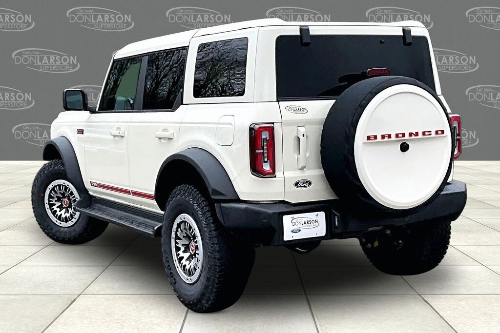 Recent Arrival! Wimbledon White 18" Bright Machined Aluminum Wheels, 3.73 Axle Ratio, 4-Wheel Disc Brakes, 7 Speakers, ABS brakes, Air Conditioning, Alloy wheels, AM/FM radio: SiriusXM with 360L, AM/FM Stereo, Auto High-beam Headlights, Auto-dimming Rear-View mirror, Automatic temperature control, Brake assist, Compass, Connected Navigation, Delay-off headlights, Driver door bin, Driver vanity mirror, Dual front impact airbags, Dual front side impact airbags, Electronic Stability Control, Emergency communication system: 911 Assist, Exterior Parking Camera Rear, Ford Connectivity Package (1-Year Included), Front anti-roll bar, Front Bucket Seats, Front Center Armrest, Front dual zone A/C, Front fog lights, Front reading lights, Front wheel independent suspension, Fully automatic headlights, Heated door mirrors, Heated front seats, Heated Leather-Trimmed/Vinyl Bucket Seats, Heated steering wheel, Illuminated entry, Integrated roll-over protection, Leather Shift Knob, Low tire pressure warning, Navigation system: Connected Navigation, Occupant sensing airbag, Outside temperature display, Overhead airbag, Overhead console, Panic alarm, Passenger door bin, Passenger vanity mirror, Power door mirrors, Power driver seat, Power passenger seat, Power steering, Power windows, Radio data system, Rear seat center armrest, Remote keyless entry, Security system, SiriusXM with 360L, Speed control, Split folding rear seat, Steering wheel mounted audio controls, SYNC 4, Tachometer, Telescoping steering wheel, Tilt steering wheel, Traction control, Trip computer, Variably intermittent wipers, Voltmeter. 2026 Ford Bronco Outer Banks 4WD 10-Speed Automatic 2.7L EcoBoost V6