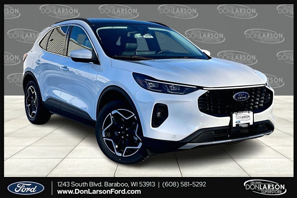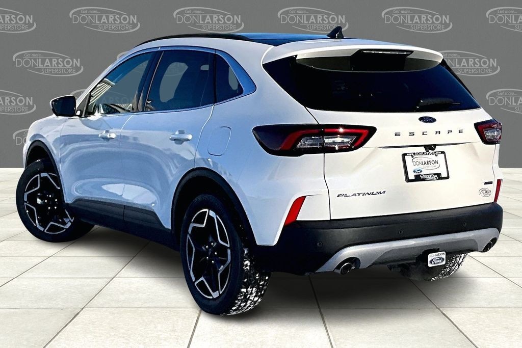 Recent Arrival! tar White Metallic Tri-Coat 2.5L iVCT, 10-Way Power Driver's Seat w/Memory, 2.91 Axle Ratio, 4-Wheel Disc Brakes, 6 Speakers, ABS brakes, ActiveX Trimmed Heated Front Sport Contour Bucket Seats with Mini-Perforations, Air Conditioning, Alloy wheels, AM/FM radio: SiriusXM 360L, Auto High-beam Headlights, Auto-dimming Rear-View mirror, Automatic temperature control, Brake assist, Bumpers: body-color, Compass, Connected Navigation (1-Year Included), Delay-off headlights, Driver door bin, Driver vanity mirror, Dual front impact airbags, Dual front side impact airbags, Electronic Fuel Door Release, Electronic Stability Control, Emergency communication system: SYNC 4 911 Assist, Ford App, Four wheel independent suspension, Front anti-roll bar, Front Bucket Seats, Front Center Armrest, Front dual zone A/C, Front fog lights, Front reading lights, Fully automatic headlights, Heated door mirrors, Heated front seats, Heated steering wheel, Illuminated entry, Knee airbag, Low tire pressure warning, Memory seat, Navigation system: Connected Navigation, Neutral Towing Capability, Occupant sensing airbag, Outside temperature display, Overhead airbag, Overhead console, Panic alarm, Passenger door bin, Passenger vanity mirror, Pedestrian Alert Sounder, Power door mirrors, Power driver seat, Power Liftgate, Power passenger seat, Power steering, Power windows, Radio data system, Radio: AM/FM Stereo with SiriusXM 360L, Rear anti-roll bar, Rear Parking Sensors, Rear reading lights, Rear seat center armrest, Rear window defroster, Rear window wiper, Remote keyless entry, Security system, Speed control, Speed-sensing steering, Speed-Sensitive Wipers, Split folding rear seat, Spoiler, Steering wheel mounted audio controls, SYNC 4 with Enhanced Voice Recognition, Tachometer, Telescoping steering wheel, Tilt steering wheel, Traction control, Trip computer, Variably intermittent wipers, Wheels: 19" Machined-Face Ebony-Painted Aluminum, 2.5L iVCT. 42/36 City/Highway MPG 2026 Ford Escape Hybrid Platinum AWD eCVT 2.5L iVCT