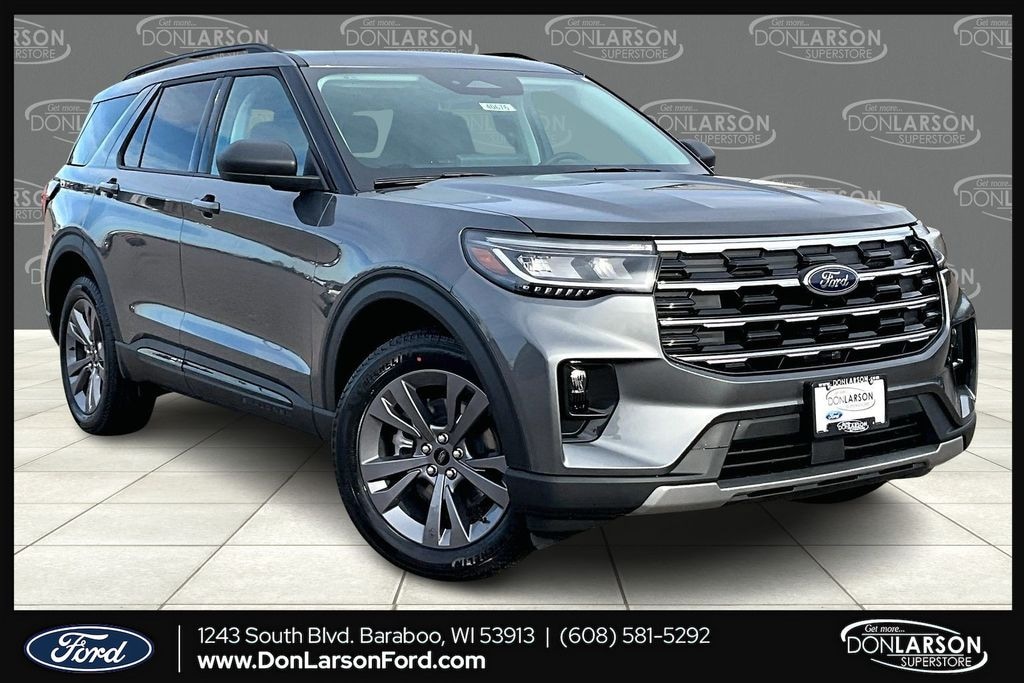 Carbonized Gray Metallic 4WD, 3rd row seats: bench, 4-Wheel Disc Brakes, 6 Speakers, 8 USB Ports, ABS brakes, Active Badging, Active Comfort Package, Active Noise Cancellation, Air Conditioning, Alloy wheels, AM/FM radio: SiriusXM with 360L, AM/FM Stereo, Apple CarPlay/Android Auto, Auto High-beam Headlights, Automatic temperature control, Black Lower Bodyside Cladding with Chrome Accent, Black Roof-Rack Side Rails, Brake assist, Bumpers: body-color, Compass, Delay-off headlights, Driver door bin, Driver vanity mirror, Dual front impact airbags, Dual front side impact airbags, Electronic Stability Control, Emergency communication system: 911 Assist, Equipment Group 200A Standard Package, Exterior Parking Camera Rear, Four wheel independent suspension, Front anti-roll bar, Front Bucket Seats, Front Center Armrest, Front dual zone A/C, Front Fascia, Front License Plate Bracket, Front reading lights, Fully automatic headlights, Heated ActiveX Seating Material Captain's Chairs, Heated door mirrors, Heated Steering Wheel, Illuminated entry, Internet access capable: FordPass Connect 5G, Knee airbag, Low tire pressure warning, Manual-Folding Sideview Mirrors, Navigation System, Occupant sensing airbag, Outside temperature display, Overhead airbag, Overhead console, Panic alarm, Panoramic Fixed Glass Roof with Power Shade, Passenger door bin, Passenger vanity mirror, Power driver seat, Power Liftgate, Power steering, Power windows, Rear air conditioning, Rear anti-roll bar, Rear reading lights, Rear window defroster, Rear window wiper, Remote keyless entry, Remote Start System, Second Row Hvac Controls, Security system, Speed control, Speed-sensing steering, Speed-Sensitive Wipers, Split folding rear seat, Spoiler, Steering wheel mounted audio controls, Tachometer, Telescoping steering wheel, Tilt steering wheel, Traction control, Trip computer, Unique Cloth Captain's Chairs, Variably intermittent wipers, Vinyl-Wrapped Steering Wheel, Wheels: 18" Sparkle Silver-Painted Aluminum, Wheels: 20" Carbonized Gray-Painted Aluminum, 4WD. 20/27 City/Highway MPG 2026 Ford Explorer Active 4WD 10-Speed Automatic 2.3L EcoBoost I-4