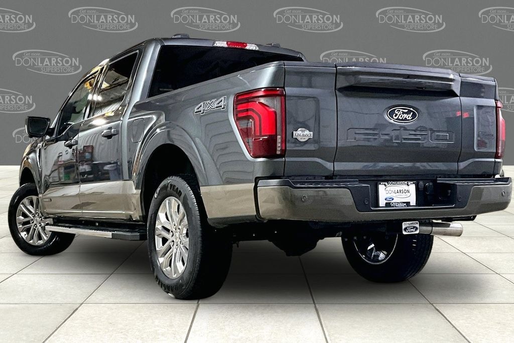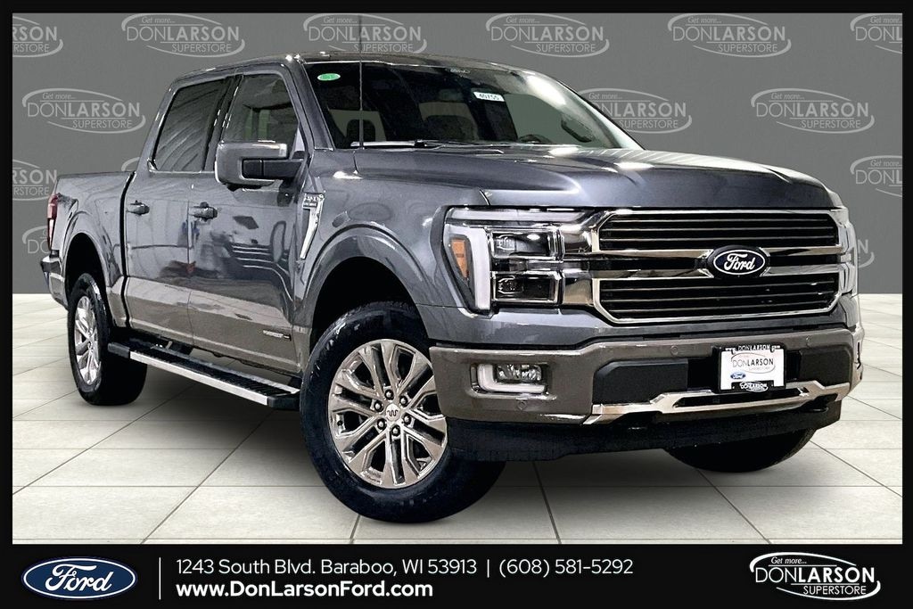 Carbonized Gray Metallic 3.5L PowerBoost Full-Hybrid V6, 4WD, 4-Wheel Disc Brakes, 8 Speakers, ABS brakes, Adjustable pedals, Air Conditioning, Alloy wheels, AM/FM radio: SiriusXM with 360L, Auto High-beam Headlights, Auto tilt-away steering wheel, Auto-dimming door mirrors, Auto-dimming Rear-View mirror, Automatic temperature control, Brake assist, Chrome wheels, Compass, Delay-off headlights, Driver door bin, Driver vanity mirror, Dual front impact airbags, Dual front side impact airbags, Electronic Locking with 3.55 Axle Ratio, Electronic Stability Control, Emergency communication system: SYNC 4 911 Assist, Ford Connectivity Package (1-Year Included), Front anti-roll bar, Front Bucket Seats, Front Center Armrest, Front dual zone A/C, Front fog lights, Front reading lights, Front wheel independent suspension, Fully automatic headlights, Garage door transmitter, Genuine wood dashboard insert, Heated door mirrors, Heated front seats, Heated rear seats, Heated steering wheel, Illuminated entry, Internet access capable: 5G Modem - Ford Connectivity Package, Leather steering wheel, Low tire pressure warning, Memory seat, Navigation system: Connected Navigation, Occupant sensing airbag, Outside temperature display, Overhead airbag, Overhead console, Panic alarm, Passenger door bin, Passenger vanity mirror, Pedal memory, Power door mirrors, Power driver seat, Power passenger seat, Power steering, Power windows, Radio data system, Radio: B&O Sound System by Bang and Olufsen, Rain sensing wipers, Rear reading lights, Rear seat center armrest, Rear step bumper, Rear window defroster, Remote keyless entry, Security system, Speed control, Split folding rear seat, Steering wheel memory, Steering wheel mounted audio controls, SYNC 4 with Enhanced Voice Recognition, Tachometer, Telescoping steering wheel, Tilt steering wheel, Traction control, Trip computer, Turn signal indicator mirrors, Variably intermittent wipers, Ventilated front seats, Wheels: 20" Chrome-Like PVD, 3.5L PowerBoost Full-Hybrid V6, 4WD. 2026 Ford F-150 King Ranch 4WD 10-Speed Automatic 3.5L PowerBoost Full-Hybrid V6