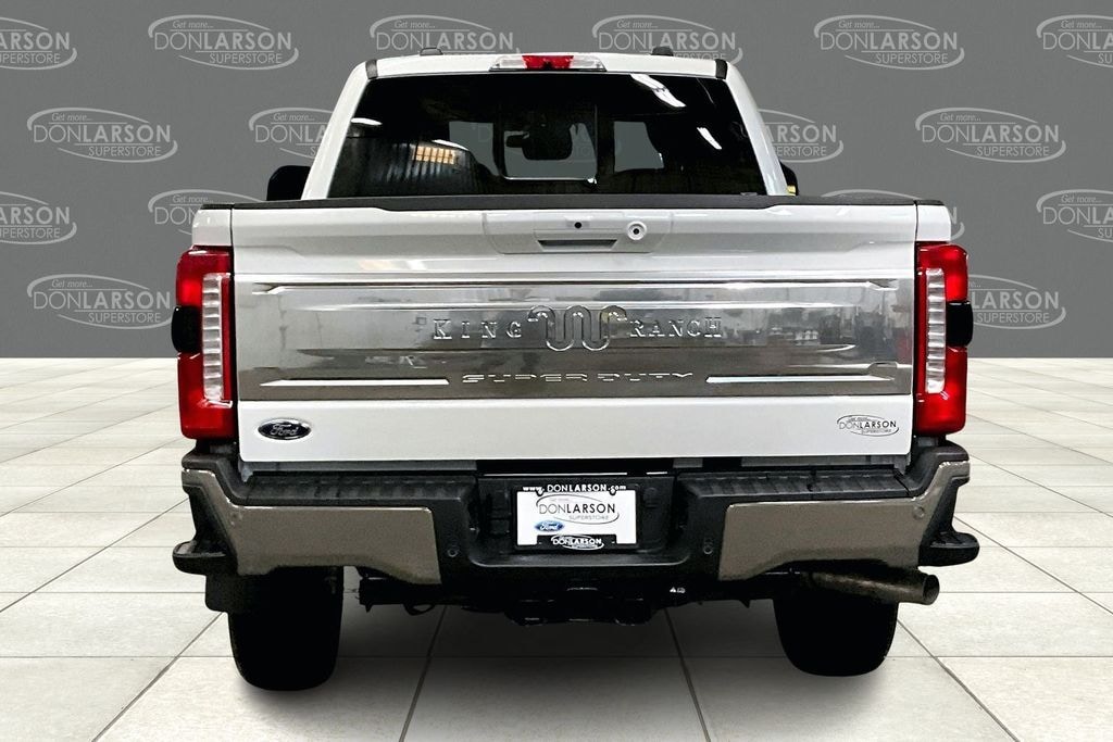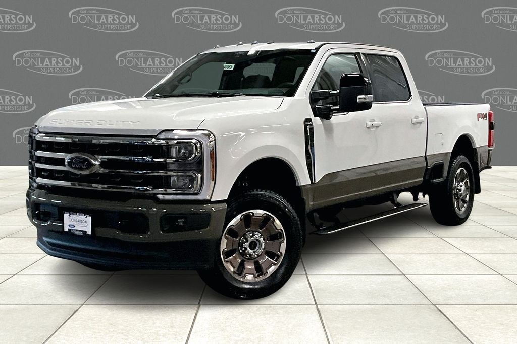 Star White Metallic Tri-Coat 4WD, 14 Speakers, 4-Wheel Disc Brakes, ABS brakes, Adjustable pedals, Air Conditioning, Alloy wheels, AM/FM radio: SiriusXM with 360L, Auto High-beam Headlights, Auto tilt-away steering wheel, Auto-dimming Rear-View mirror, Automatic temperature control, Brake assist, Compass, Delay-off headlights, Driver door bin, Driver vanity mirror, Dual front impact airbags, Dual front side impact airbags, Electronic Stability Control, Electronic-Locking with 3.73 Axle Ratio, Emergency communication system: SYNC 4 911 Assist, Flow-Through Console, Ford Connectivity Package (1-Year Included), Front anti-roll bar, Front Bucket Seats, Front Center Armrest, Front dual zone A/C, Front fog lights, Front reading lights, Fully automatic headlights, Garage door transmitter, Heads-Up Display, Heated door mirrors, Heated front seats, Heated rear seats, Heated steering wheel, Illuminated entry, Internet access capable: 5G Modem - Ford Connectivity Package, Leather steering wheel, Low tire pressure warning, Memory seat, Navigation system: Connected Navigation, Outside temperature display, Overhead airbag, Overhead console, Panic alarm, Passenger door bin, Passenger vanity mirror, Pedal memory, Power door mirrors, Power driver seat, Power passenger seat, Power steering, Power windows, Radio: B&O Unleashed Sound System by Bang & Olufsen, Rain sensing wipers, Rear reading lights, Rear seat center armrest, Rear step bumper, Rear window defroster, Remote keyless entry, Security system, SiriusXM with 360L, Speed control, Split folding rear seat, Steering wheel memory, Steering wheel mounted A/C controls, Steering wheel mounted audio controls, SYNC 4 with Enhanced Voice Recognition, Tachometer, Telescoping steering wheel, Tilt steering wheel, Traction control, Trip computer, Turn signal indicator mirrors, Unique King Ranch Leather 40/Console/40 Seats, Variably intermittent wipers, Ventilated front seats, Wheels: 20" Bright Machined Aluminum, 4WD. 2026 Ford F-350SD King Ranch 4WD 10-Speed Automatic 7.3L V8 PFI OHV 16V Federal 430hp