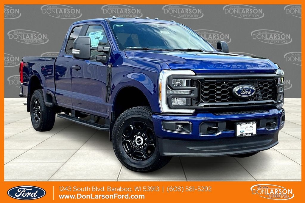 Argon Blue Metallic 4WD, 17" Argent Painted Steel Wheels, 4-Wheel Disc Brakes, 410 Amp Dual Alternators, 5th Wheel/Gooseneck Hitch Prep Package, 6 Speakers, ABS brakes, Air Conditioning, AM/FM radio, AM/FM Stereo w/MP3 Player, Brake assist, Cloth 40/20/40 Split Bench Seat, Compass, Delay-off headlights, Dual AGM 68 AH Battery, Dual front impact airbags, Dual front side impact airbags, Electronic Stability Control, Emergency communication system: SYNC 4 911 Assist, Exterior Backup Alarm (Pre-Installed), Exterior Parking Camera Rear, Ford Connectivity Package (1-Year Included), Front & Rear Wheel Well Liners (Pre-Installed), Front anti-roll bar, Front Center Armrest w/Storage, Front License Plate Bracket, Front reading lights, Front Splash Guards/Mud Flaps (Pre-Installed), Fully automatic headlights, FX4 Off-Road Package, HD Vinyl 40/20/40 Split Bench Seat, Heated door mirrors, Illuminated entry, Internet access capable: 5G Modem - Ford Connectivity Package, LED Fog Lamps, LED Roof Clearance Lights, Low tire pressure warning, Order Code 610A, Outside temperature display, Overhead airbag, Overhead console, Panic alarm, Passenger cancellable airbag, Passenger vanity mirror, Platform Running Boards, Power door mirrors, Power steering, Power windows, Power-Sliding Rear-Window w/Defrost, Pre-Collision Assist, Privacy Glass, Rear Splash Guards/Mud Flaps (Pre-Installed), Rear step bumper, Remote keyless entry, Remote Start System, Security system, Snow Plow Prep Package, Speed control, Split folding rear seat, Steering wheel mounted audio controls, STX Appearance Package, SYNC 4, Tachometer, Tailgate Step & Handle, Telescoping steering wheel, Tilt steering wheel, Tough Bed Spray-In Bedliner, Traction control, Trip computer, Turn signal indicator mirrors, Upfitter Switches (6), Variably intermittent wipers, Wheels: 18" Ebony Black Painted Aluminum, XL Driver Assist Package, 4WD. 2026 Ford F-350SD XL 4WD 10-Speed Automatic 7.3L V8 PFI SOHC 16V Federal 405hp